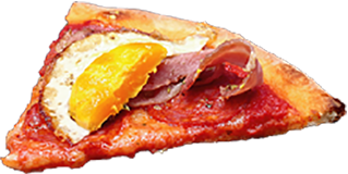 Tomatensauce, Mozzarella, Speck, Zwiebel, Spiegelei, Origano